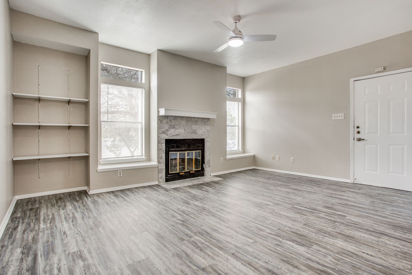 Light filled condo in great location in the 78745 zip! Perfect Roommate plan with 2 spacious bedrooms and 2 full baths. Large living room with fireplace! Tons of upgrades throughout! Quartz Counters, upgraded fixtures and wood look flooring with no Carpet!!